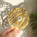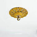 Add a touch of romantic boho elegance to your space with this solid brass ceiling hook featuring an ornate floral-etched canopy cap. The hand-cast design showcases delicate scrollwork and vintage-inspired detailing—perfect for creating charming hanging displays with a warm, lived-in feel.