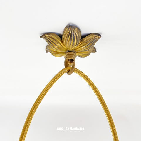 A stunning lotus hook that can be used to hang almost anything and will add style and charm to your home. The perfect accessory for home decor hangings on the ceiling and wall. This multi-purpose hook may be used for swag hanging pendant lamps, string lights, hanging planters, flower pots, holiday decorations, wind chimes, sun catchers, bird feeders, lanterns, keys and more! Easy to install with included hardware. The versatile open hook slot will accommodate various sized cords and rings.