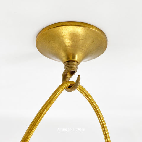 A minimalist short cone hook made of brass. It can be used to hang almost anything and will add style and charm to your home. The perfect accessory for home decor hangings on the ceiling and wall as well. This multi-purpose hook is ideal for hanging planters, flower pots, swag hanging pendant lamps, string lights, holiday decorations, wind chimes, sun catchers, bird feeders, lanterns and more! Easy to install with included hardware. The versatile open hook slot will accommodate various sized cords and rings.