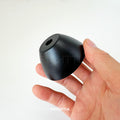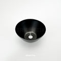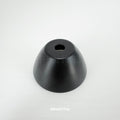 A curved cap made of spun metal in a matte black finish. A lamp component used for lamp and DIY craft projects.